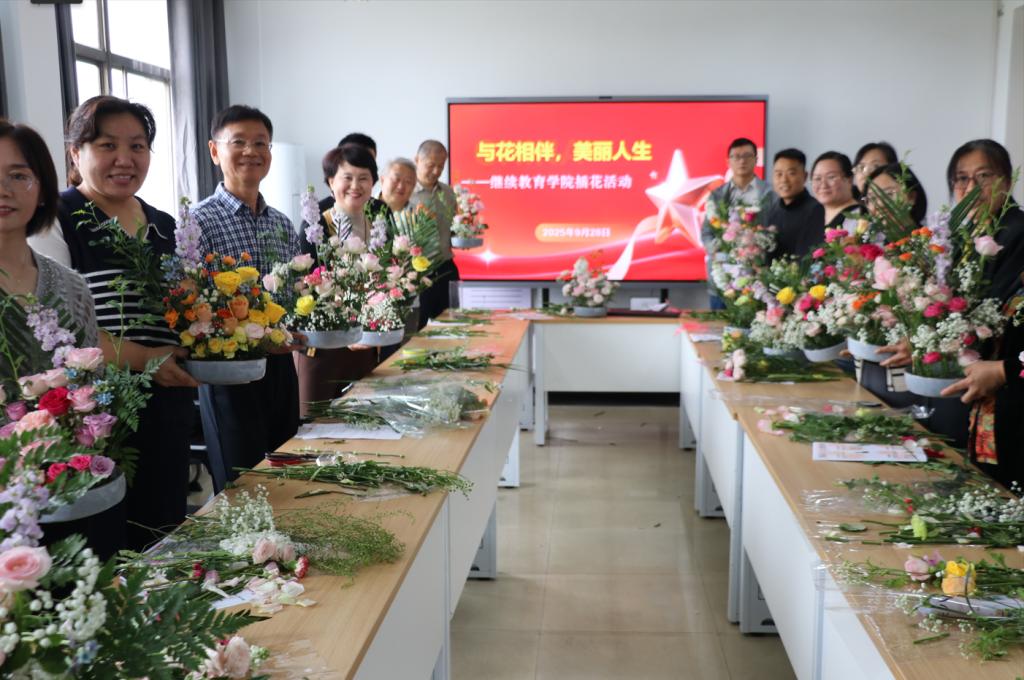 秋意渐浓,花香四溢。为庆祝校庆七十周年与国庆佳节,丰富教职工精神文化生活,提升艺术修养与审美情趣,9月28日上午,由继续教育学院工会与花路花艺共同策划的“与花为伴,美丽人生”主题插花活动,在学院会议室顺利举行,全体教职工踊跃参与。