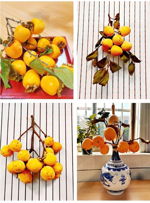 老师们将一个个色泽饱满、形态可掬的柿子精心摆放在办公桌、书架、窗台等处。有的将柿子与书籍、绿植搭配,营造出雅致的工作氛围;有的用篮子或托盘盛放,构成一道亮眼的秋日小品。各办公室内“柿”趣盎然,象征着“事事如意”、“万事顺心”美好寓意的小果实,不仅为严肃的办公环境增添了一抹温暖的亮色和盎然生机,更承载了学院对教职工们的美好祝福。